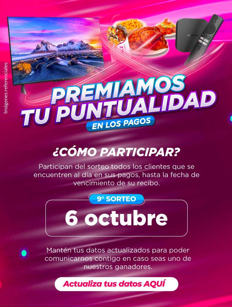 *Alquiler mensual del equipo Mesh: S/1 si migras desde otro operador, o S/5 para nuevos clientes.